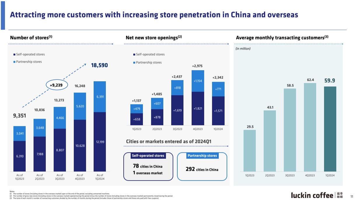 Luckin coffee ก็จะเห็นว่า SSSG -20% เลย(สตาบัค-11%) แต่ Luckin coffee เปิดสาขาเพิ่มกว่า 9,000 สาขาภายในปีเดียวเท่านั้น(สตาบัคในจีน +850 สาขาเท่านั้น) ถ้าพี่จีนจะเปิดสาขา 2เท่าตัวในปีเดียวแบบนี้ sssg จะลบ 20% ก็คงไม่แปลก