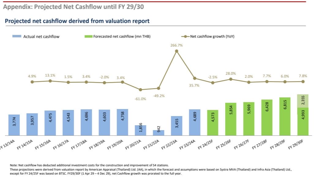 การจะดูว่าน่าลงทุนมั้ยเราจึงไม่สามารถดูกราฟเทคนิคได้ แต่ที่เราต้องดูคือเงินที่ BTSGIF จ่ายคืนนักลงทุน